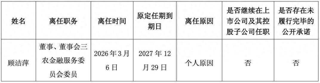 3月6日,瑞丰银行(SH 601528)发布公告称,本行董事会收到董事顾洁萍提交的书面辞呈,顾洁萍因个东说念主原因,苦求辞去本行董事、董事会三农金融劳动委员会委员职务,离职后不再担任本行任何职务。凭证关联法律法例及本行《规定》规矩,该辞呈自2026年3月6日起奏效。