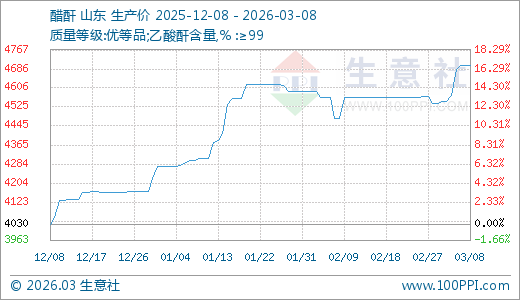 03月08日醋酐4700.00元/吨 5天上涨3.35%